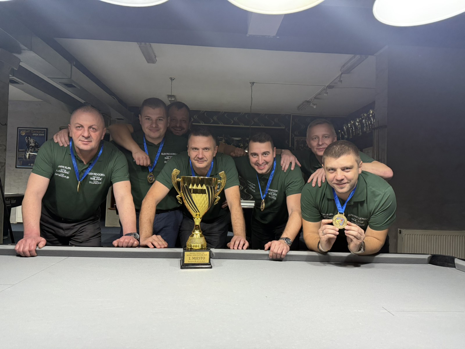 Nemanja Mićić, Nebojša Nikolić, Goran Radišković, Dušan Damjanović, Saša Đekić, Danijel Dujaković i Predrag Smiljanić, osvojila titulu ekipnog prvaka Bosne i Hercegovine u bilijaru za ovu godinu!