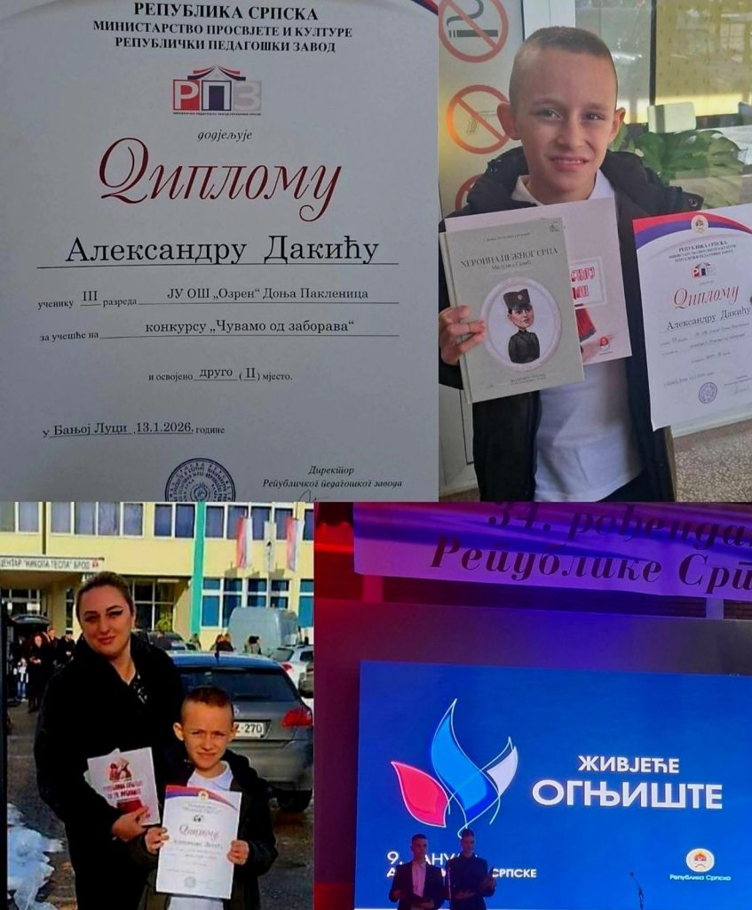Čast da prisustvuje ovakvom događaju imao je učenik trećeg razreda JU OŠ „Ozren“ Donja Paklenica, područnog odjeljenja Trbuk, Aleksandar Dakić, koji je osvojio drugo mjesto svojim likovnim radom u kategoriji mlađeg osnovnoškolskog uzrasta.