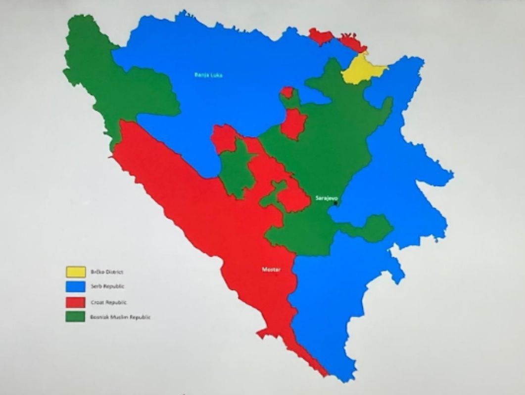 Na njoj je crvenom bojom označena “Croat Republic” koja obuhvata zapadnu Hercegovinu i prostor oko Mostara, te odvojene enklave u srednjoj Bosni i Posavini.
